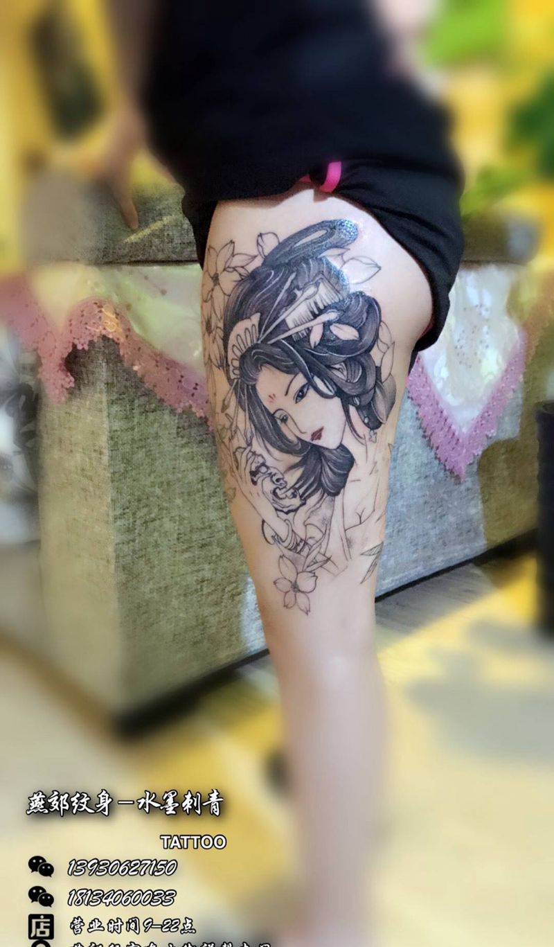 当前位置: 首页 >河北省廊坊市纹身店-祥Tattoo燕郊店纹身图案>艺伎纹身图片_臀部腿部传统人物纹身图案