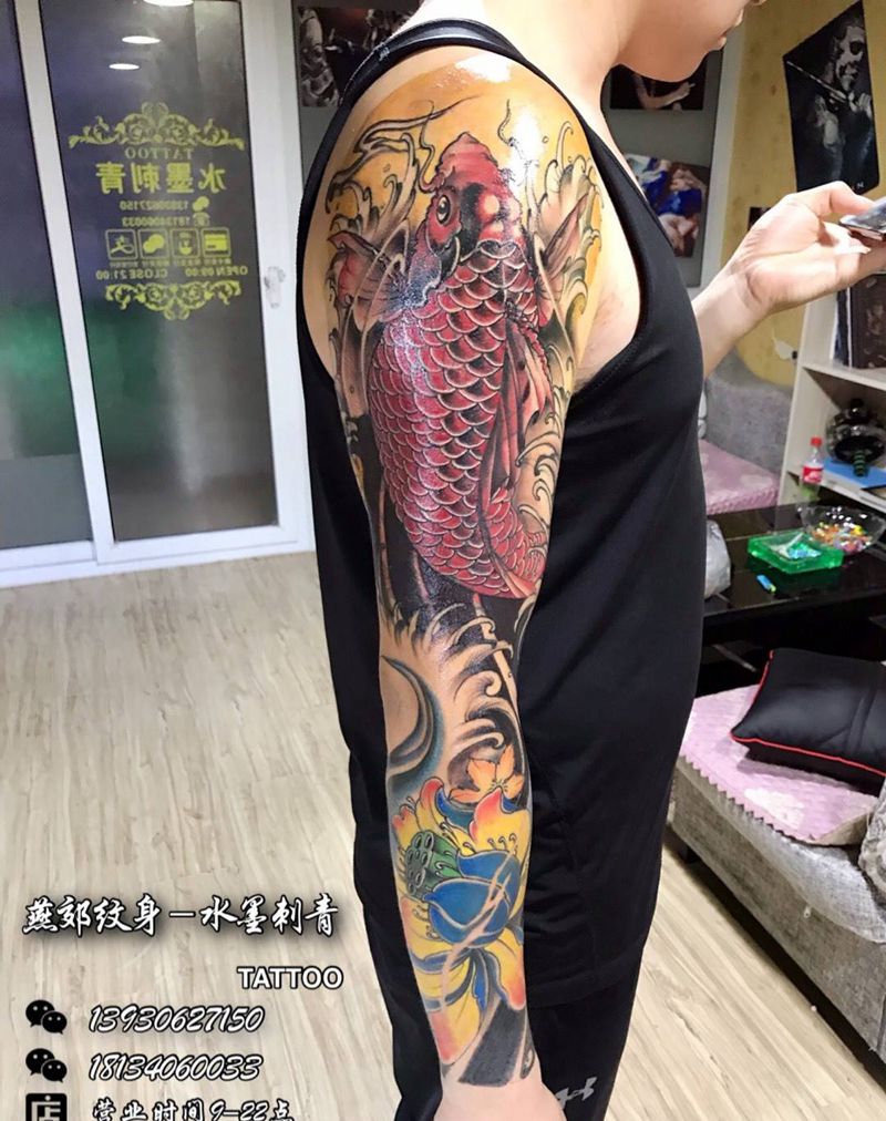 当前位置: 首页 >河北省廊坊市纹身店-祥Tattoo燕郊店纹身图案>花臂遮盖纹身图片_成品肩部手臂传统动物植物纹身图案