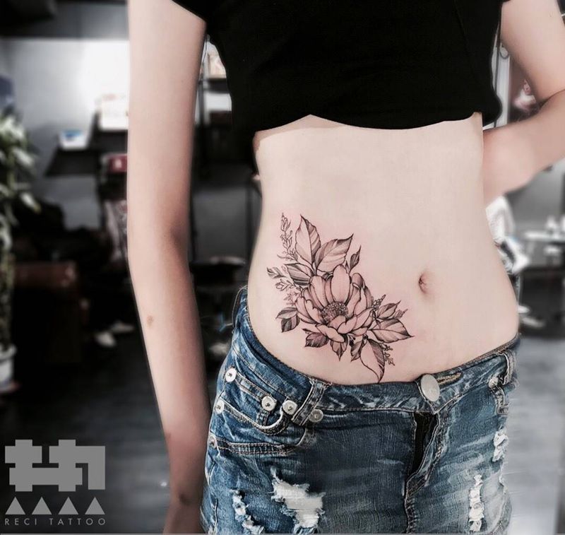 当前位置: 首页 >河北省廊坊市纹身店-祥Tattoo燕郊店纹身图案>繁花纹身图片_成品腹部腰部清新植物点刺纹身图案