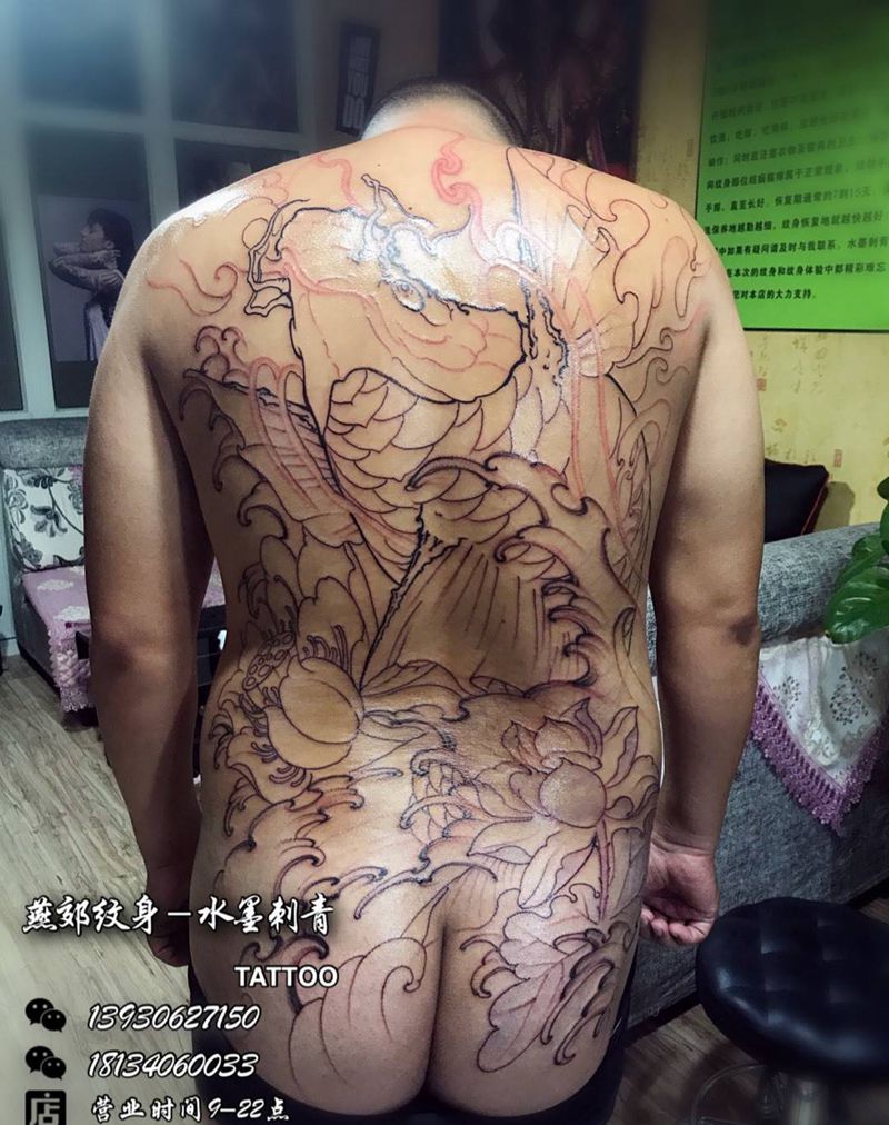 天天养鱼……未完成纹身图片_背部传统动物纹身图案