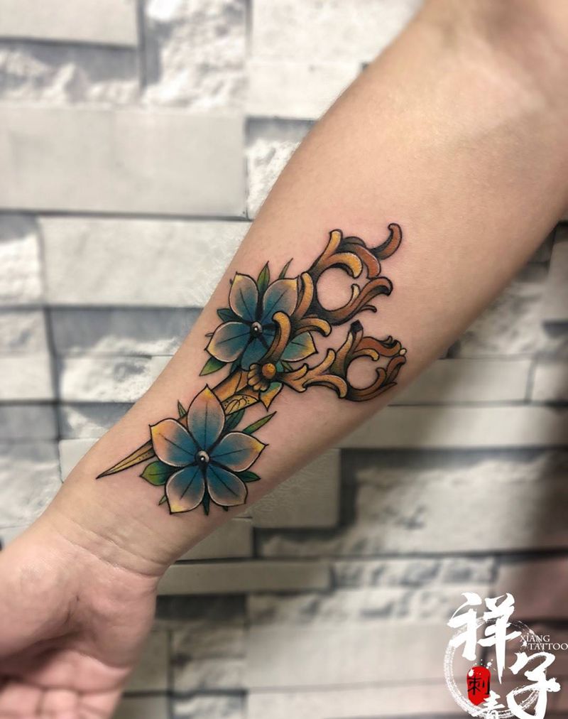 当前位置: 首页 >河北省廊坊市纹身店-祥Tattoo燕郊店纹身图案>剪刀纹身图片_成品手臂欧美静物植物纹身图案
