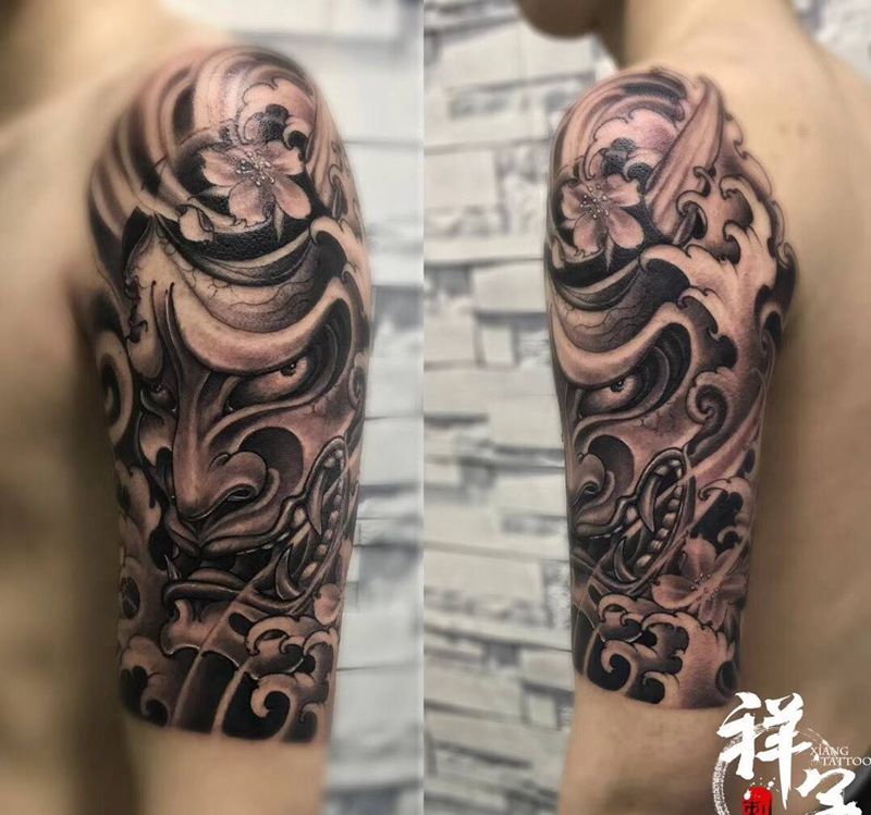 般若纹身图片_成品肩部手臂传统鬼神纹身图案