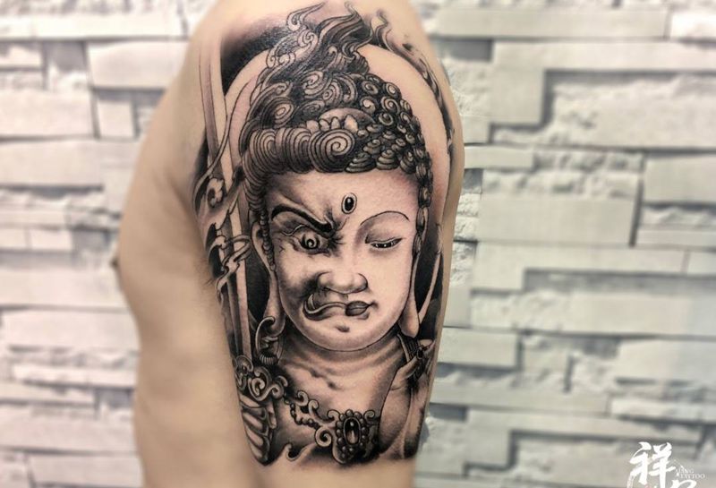 当前位置: 首页 >河北省廊坊市纹身店-祥Tattoo燕郊店纹身图案>一念之间纹身图片_成品肩部手臂臀部腹部鬼神传统纹身图案
