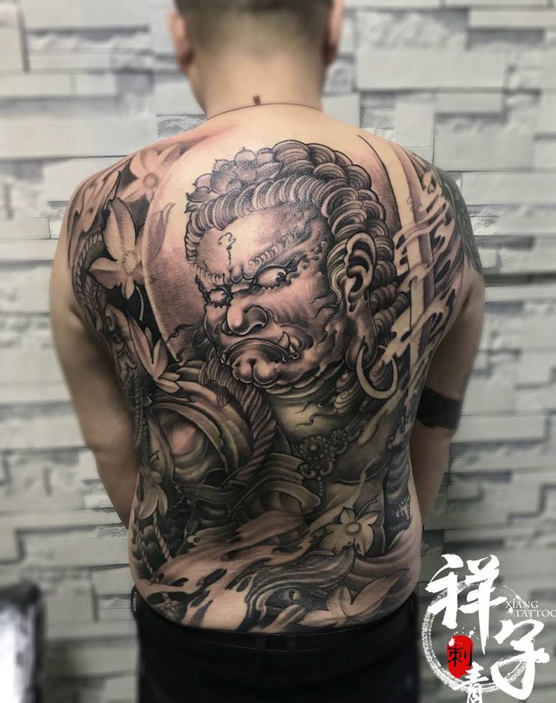 不动明王纹身图片_成品背部传统鬼神纹身图案