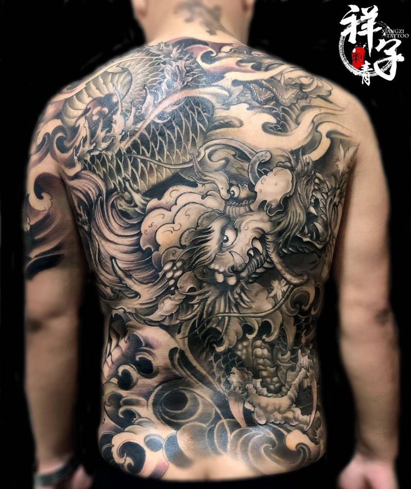 • T云龙九郎纹身图片_背部老传统云龙九郎纹身图案