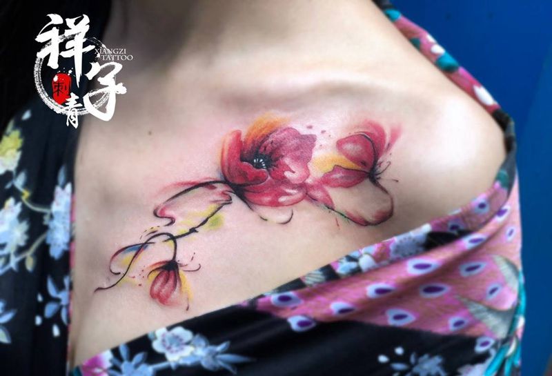 • 女性大花胸纹身_43张霸气漂亮的女性大花胸纹身图案作品