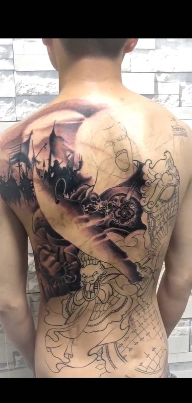 • 黑灰满背纹身图案