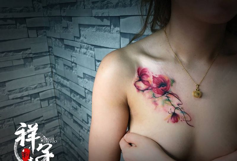 • 女性大花胸纹身_43张霸气漂亮的女性大花胸纹身图案作品