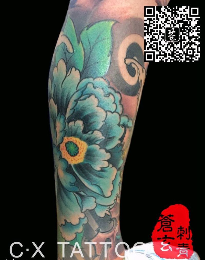 • T网红王老大花腿龙纹身图片_腿部新传统纹身图案