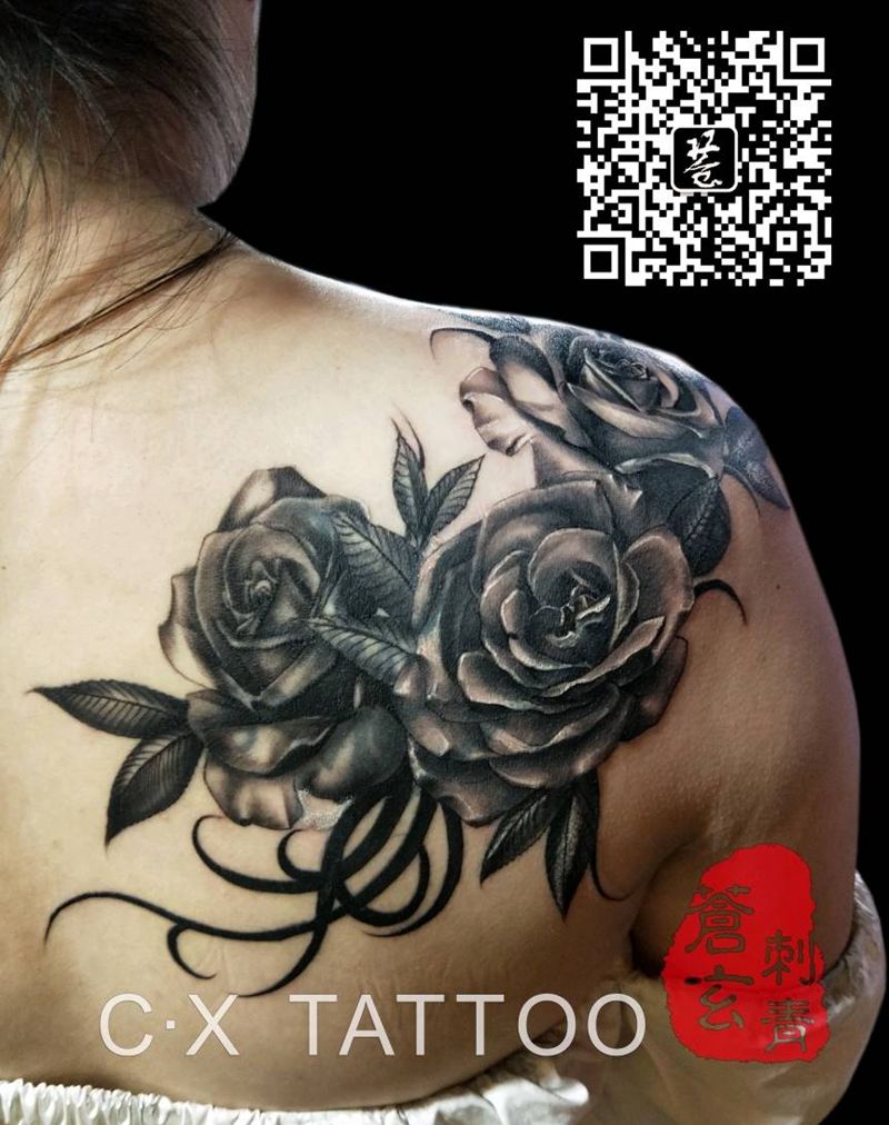 遮盖 玫瑰纹身图片_胸部腹部背部手臂欧美传统清新写实原创成品纹身图案