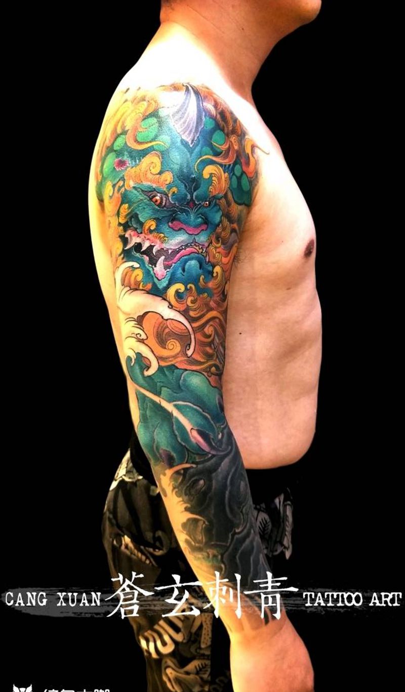 当前位置: 首页 >河北省廊坊市纹身店-苍玄刺青纹身图案>唐狮遮盖般若纹身图片_手部手臂新传统老传统般若毁皮唐狮纹身图案