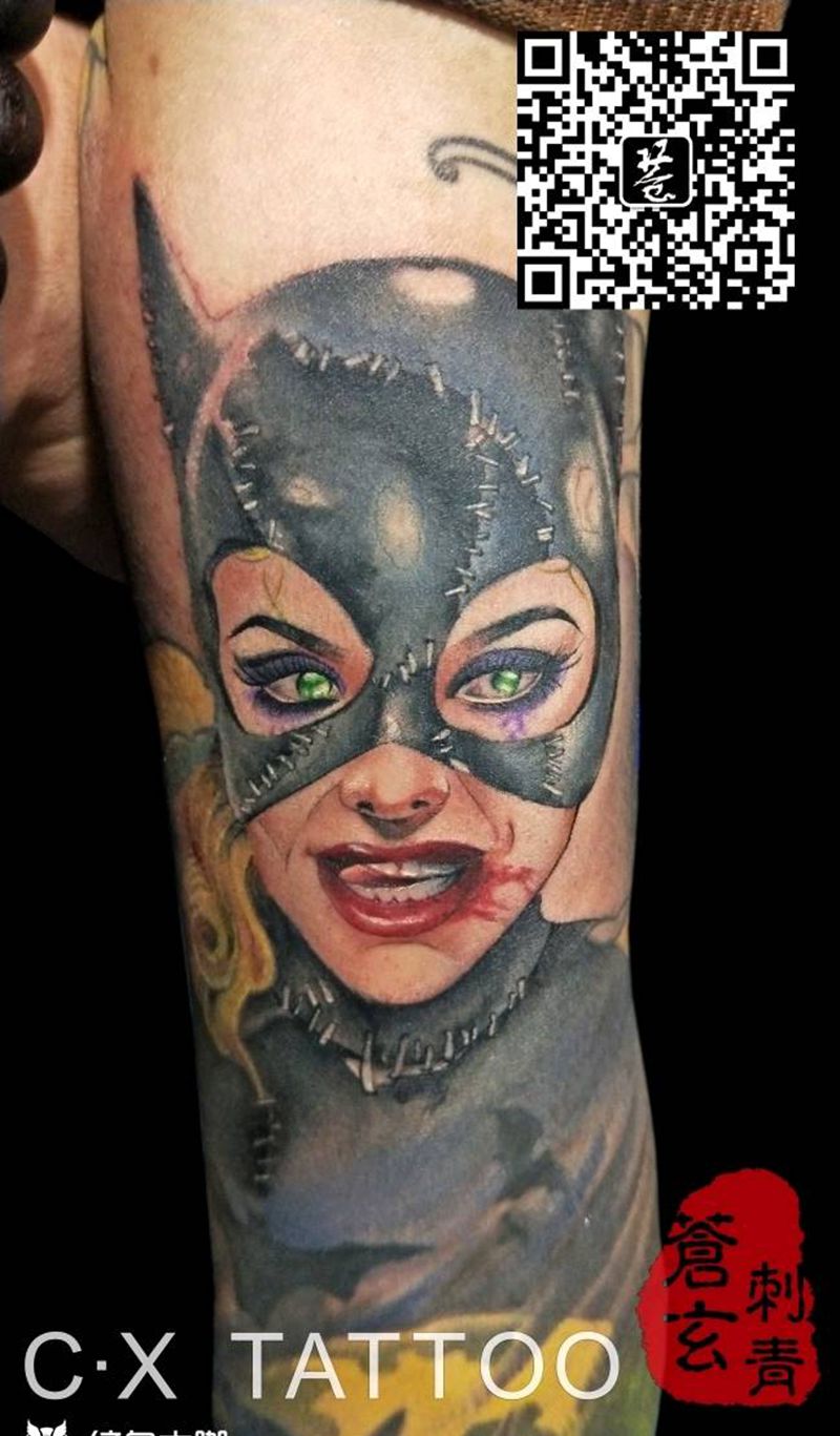 当前位置: 首页 >河北省廊坊市纹身店-苍玄刺青纹身图案>猫女纹身图片_腰部背部手臂腿部欧美肖像写实人物原创成品纹身图案