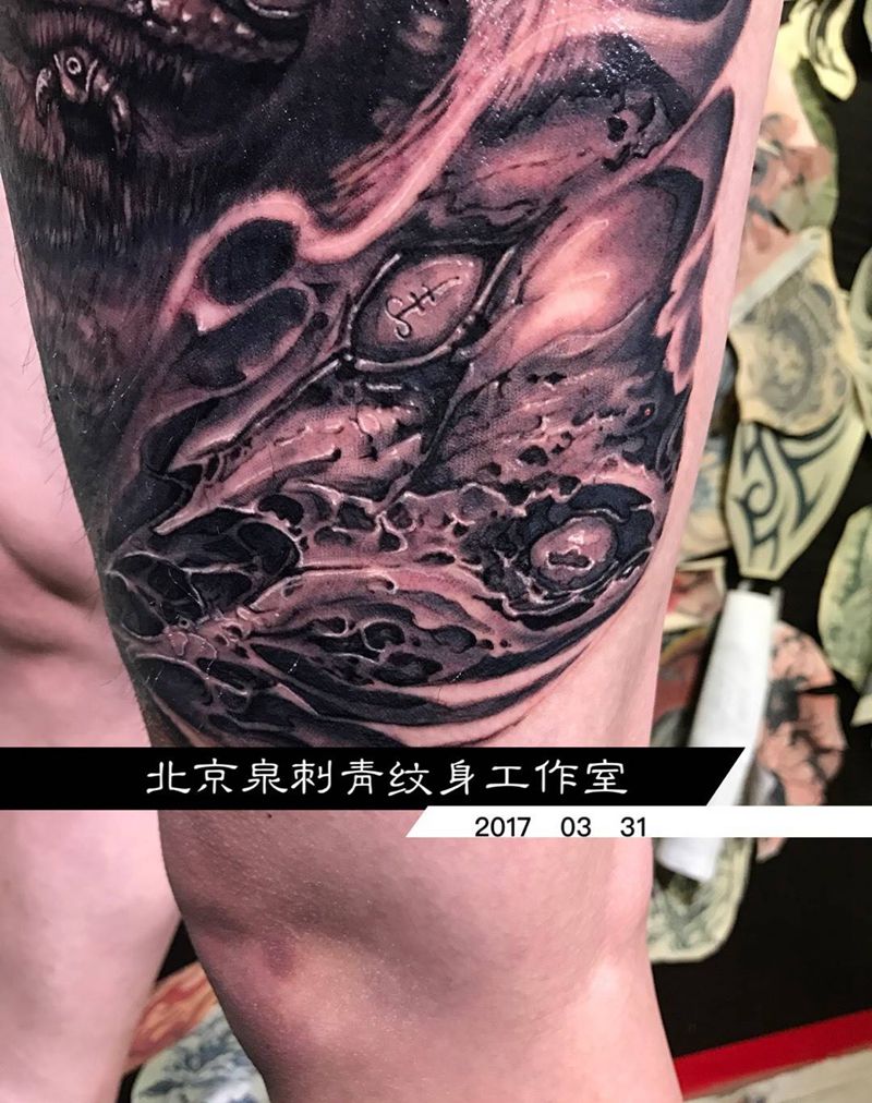 当前位置: 首页 >河北省廊坊市纹身店-山竹刺青纹身图案>魔兽世界纹身图片_成品腿部欧美写实动物鬼神纹身图案