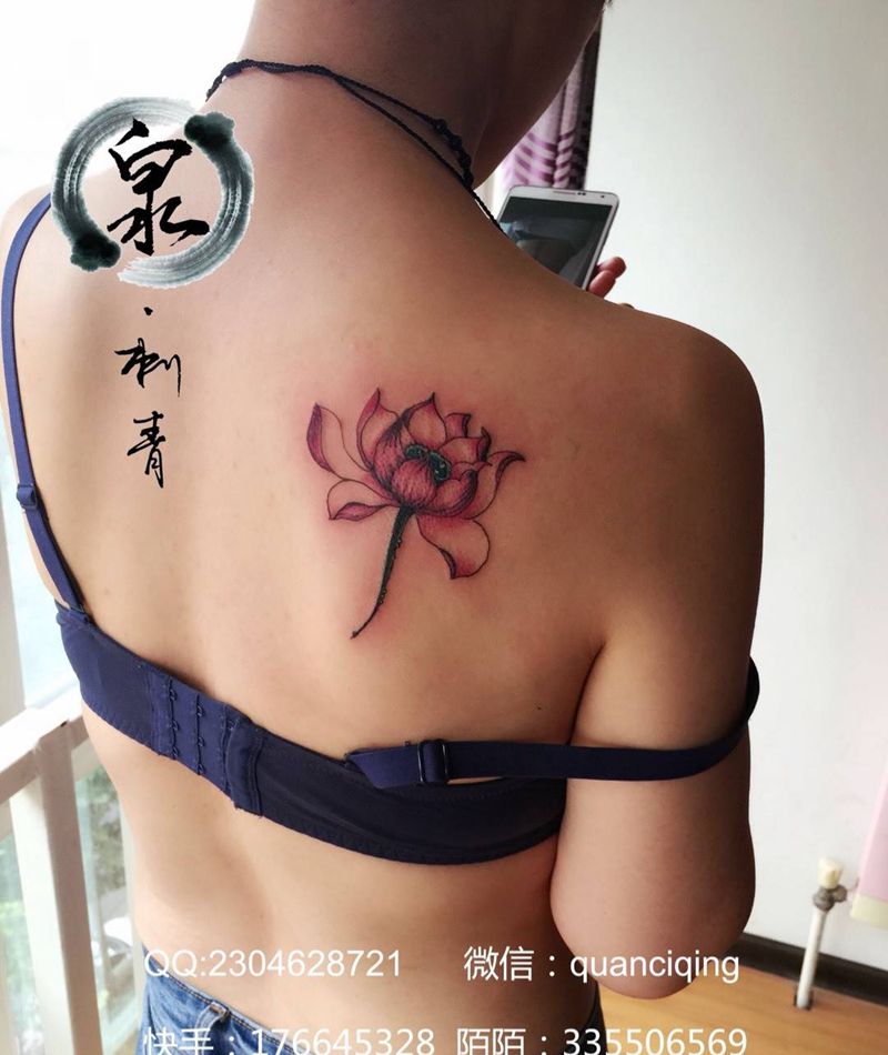 当前位置: 首页 >河北省廊坊市纹身店-山竹刺青纹身图案>莲花纹身图片_成品背部写实国画传统清新植物纹身图案