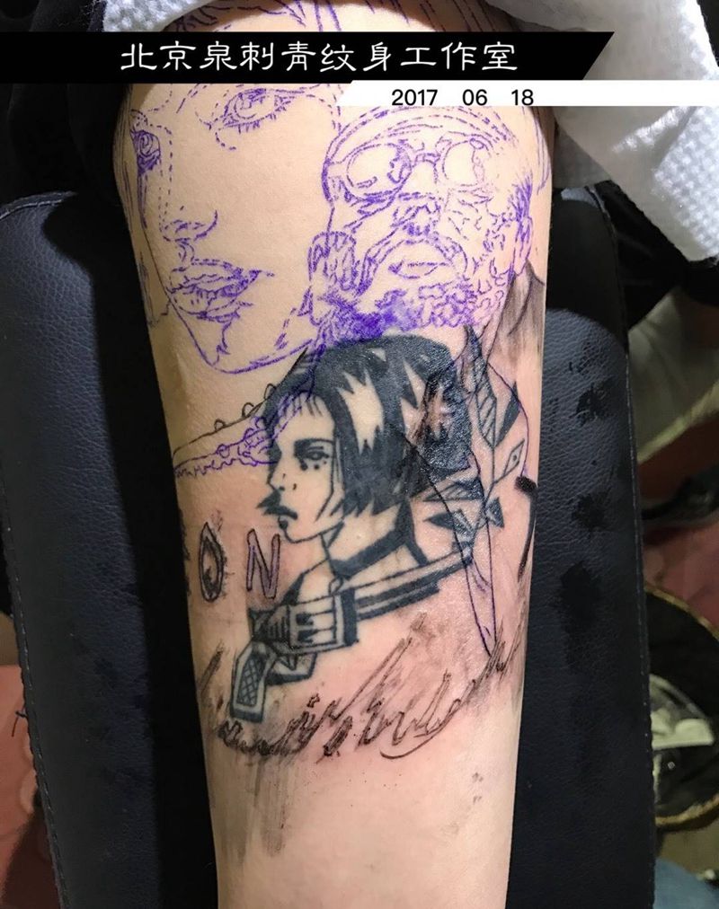 当前位置: 首页 >河北省廊坊市纹身店-山竹刺青纹身图案>遮盖旧纹身纹身图片_成品手臂欧美写实人物情侣纹身图案