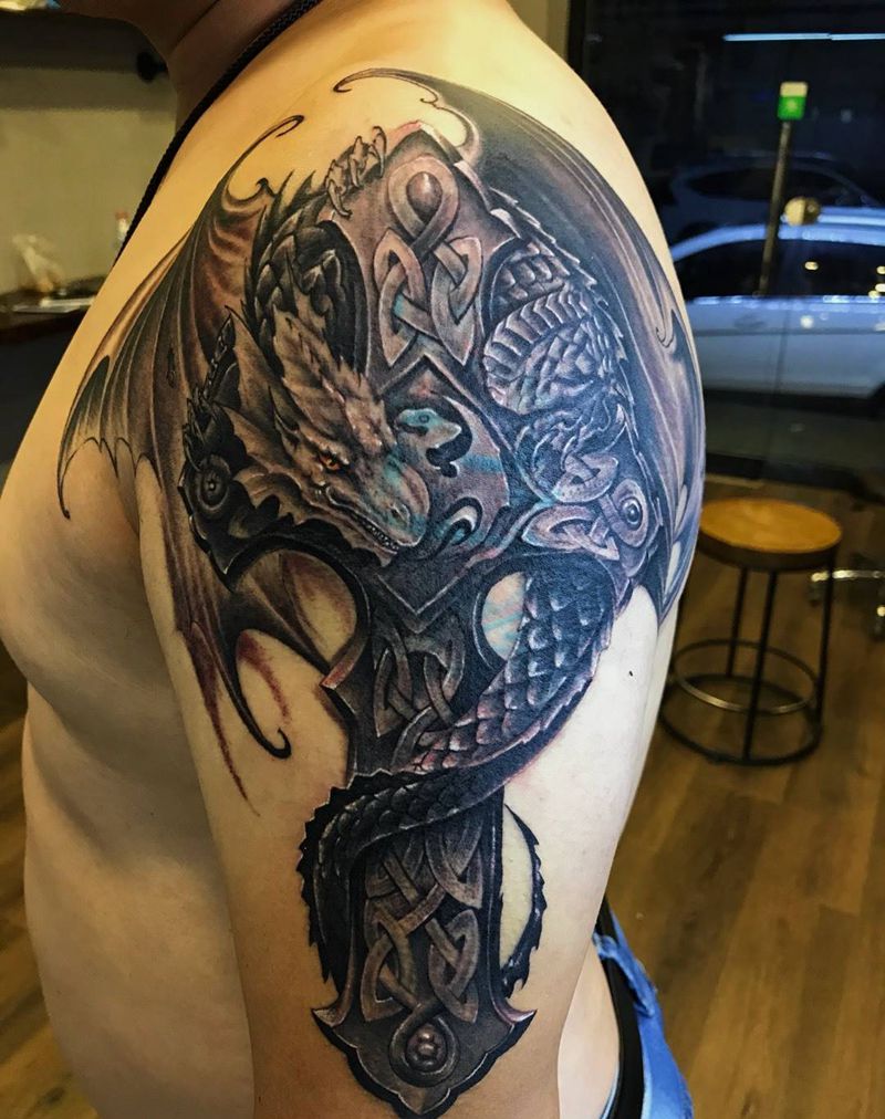 • 纹身吧推荐的披肩图腾半胛纹身图案作品展示