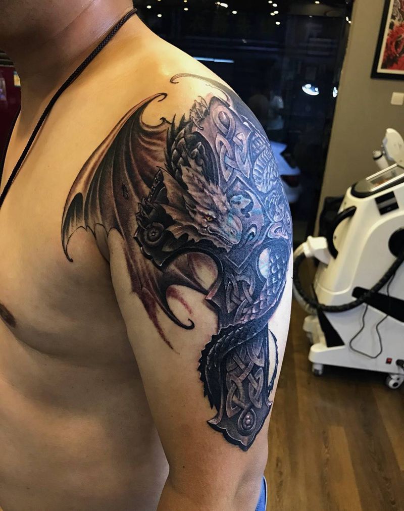 • 纹身吧推荐的披肩图腾半胛纹身图案作品展示