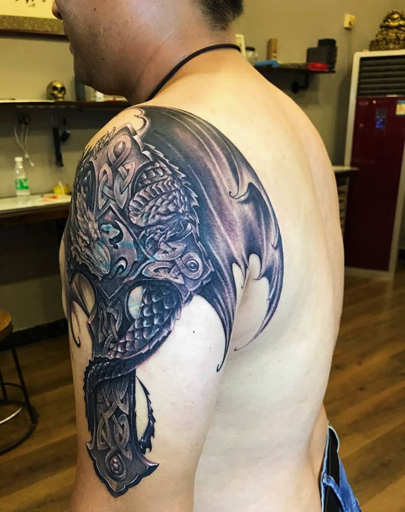 • 纹身吧推荐的披肩图腾半胛纹身图案作品展示