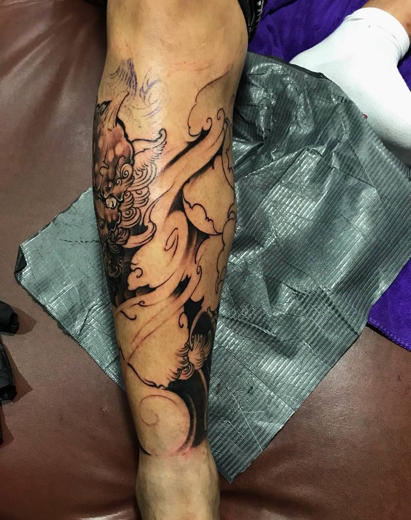 当前位置: 首页 >河北省廊坊市纹身店-藝健堂刺青团队纹身图案>唐狮-未完成纹身图片