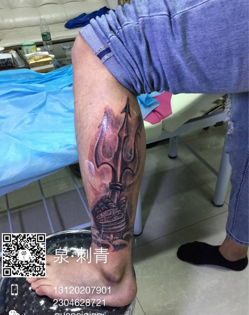 当前位置: 首页 >河北省廊坊市纹身店-山竹刺青纹身图案>海神之叉纹身图片_成品手稿插画腿部写实欧美鬼神原创纹身图案