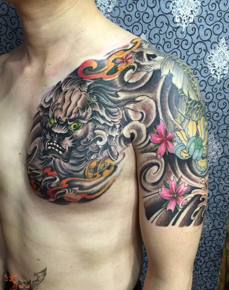 当前位置: 首页 >河北省廊坊市纹身店-藝健堂刺青团队纹身图案>唐狮半胛修改纹身图片