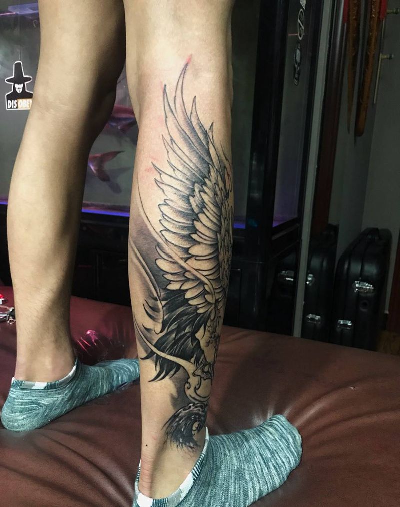 • T网红王老大花腿龙纹身图片_腿部新传统纹身图案