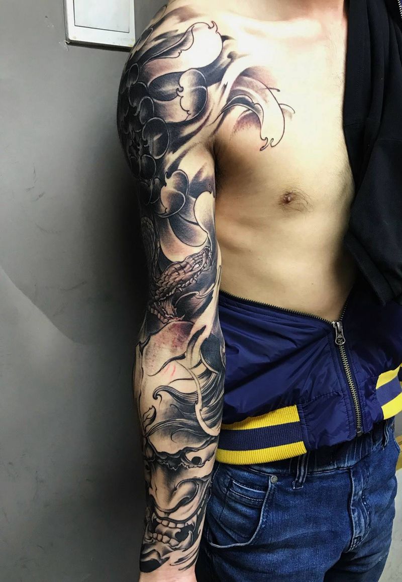 当前位置: 首页 >河北省廊坊市纹身店-藝健堂刺青团队纹身图案>般若 菊花 蛇纹身图片_成品手臂传统原创纹身图案