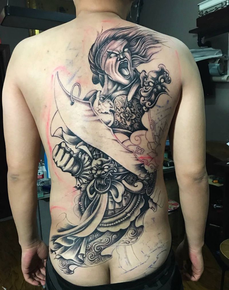 • 黑灰满背纹身图案