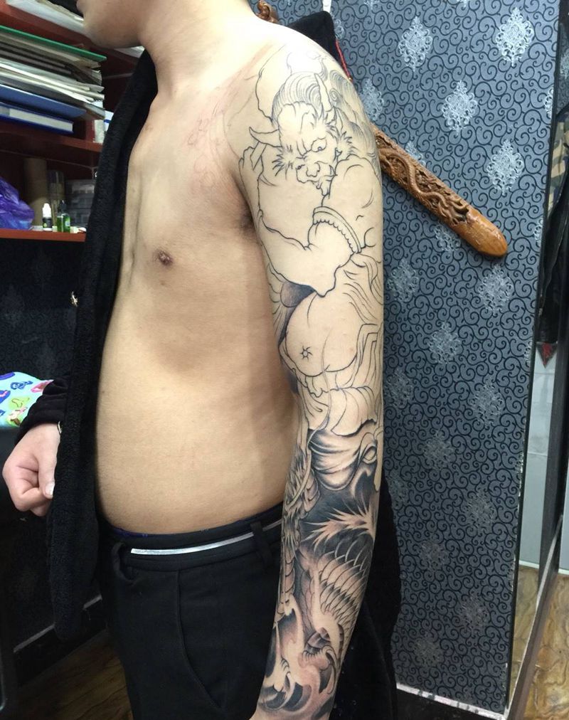 当前位置: 首页 >河北省廊坊市纹身店-藝健堂刺青团队纹身图案>雷神花臂纹身图片