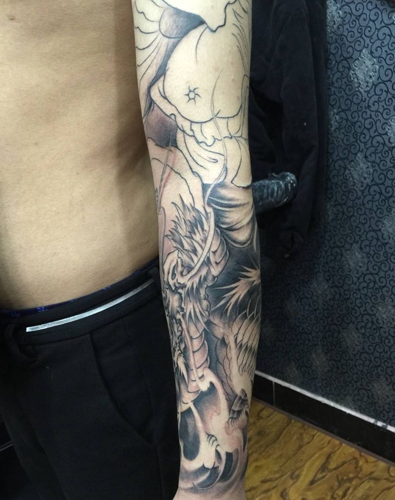 当前位置: 首页 >河北省廊坊市纹身店-藝健堂刺青团队纹身图案>雷神花臂纹身图片