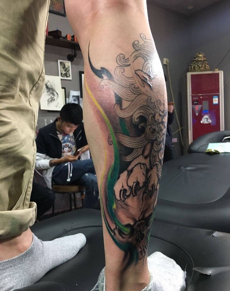 • T网红王老大花腿龙纹身图片_腿部新传统纹身图案