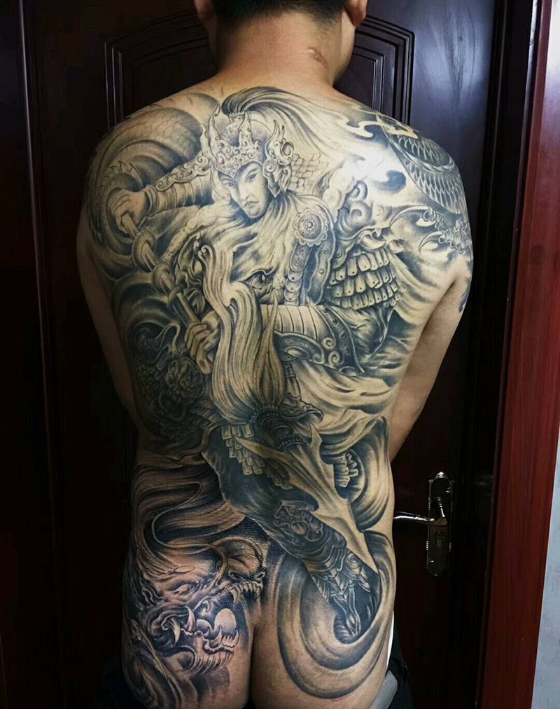 黑灰满背纹身图案