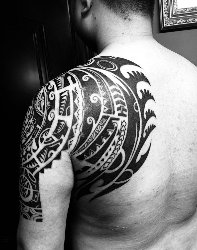 • 纹身吧推荐的披肩图腾半胛纹身图案作品展示