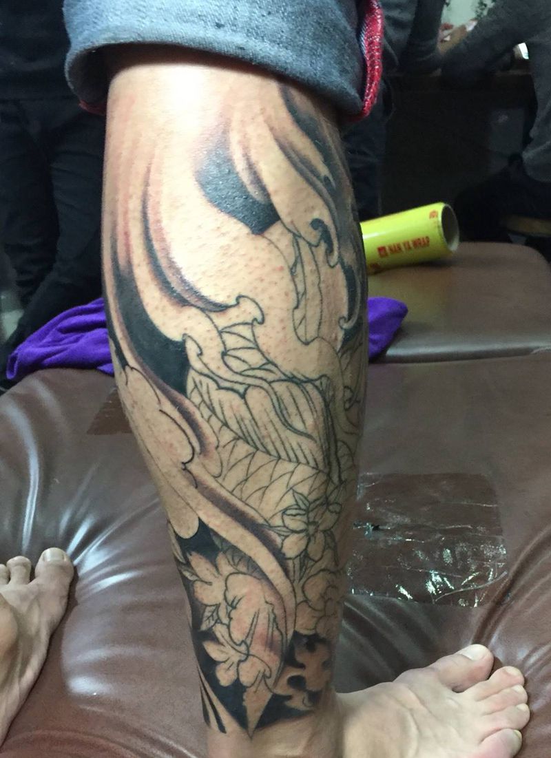 • T网红王老大花腿龙纹身图片_腿部新传统纹身图案