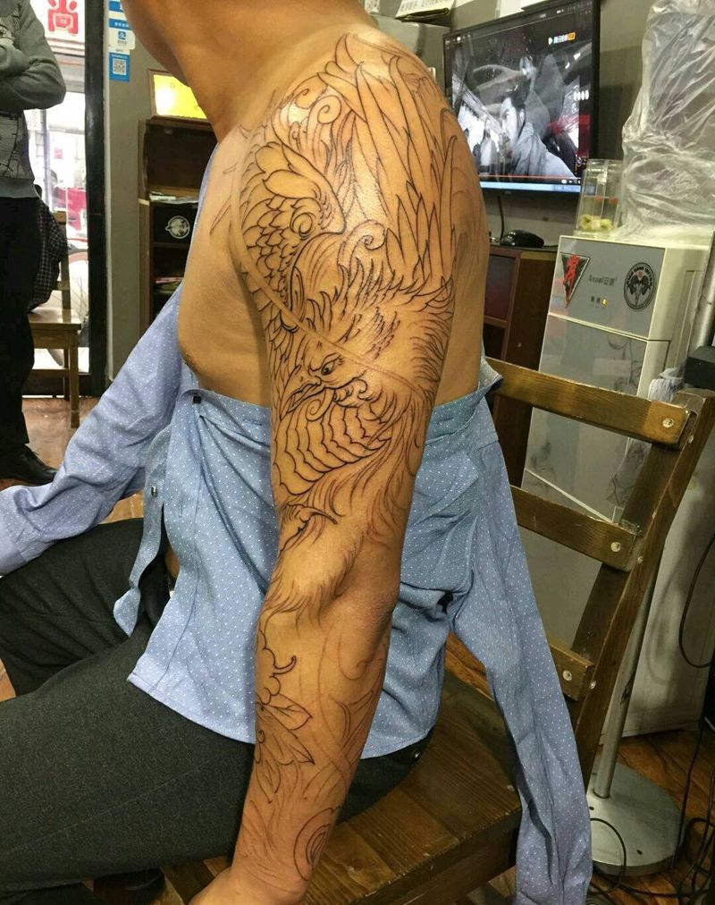 凤-牡丹 花臂-未完成纹身图片