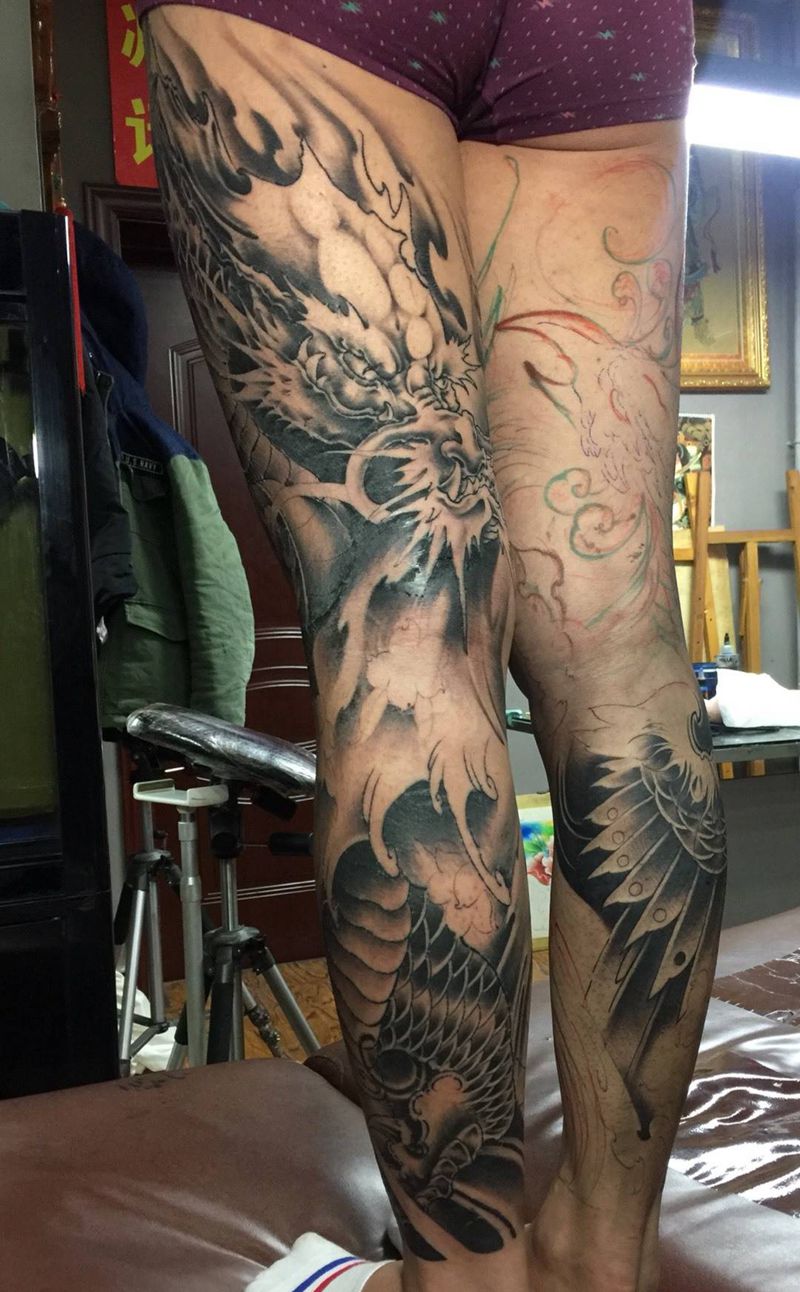 当前位置: 首页 >河北省廊坊市纹身店-藝健堂刺青团队纹身图案>龙凤-腿纹身图片