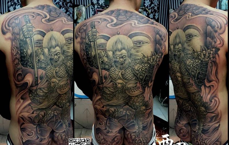 当前位置: 首页 >河北省廊坊市纹身店-西界刺青纹身图案>满背大圣纹身图片_成品背部传统人物鬼神宗教纹身图案