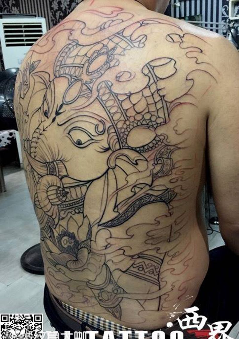 黑灰满背纹身图案