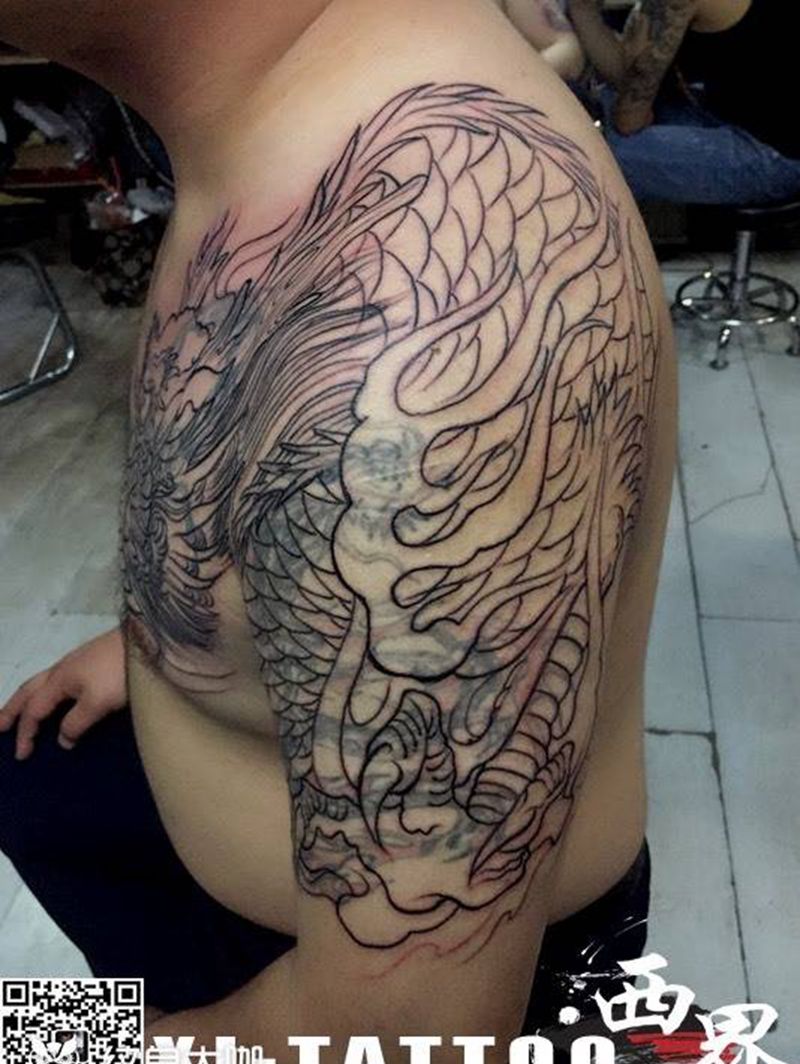 黑灰满背纹身图案