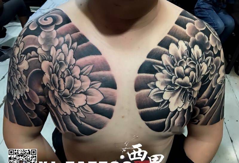 • 女性大花胸纹身_43张霸气漂亮的女性大花胸纹身图案作品