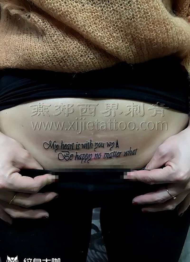 • T关于私处得爱!纹身图片_成品腹部清新字符图腾纹身图案