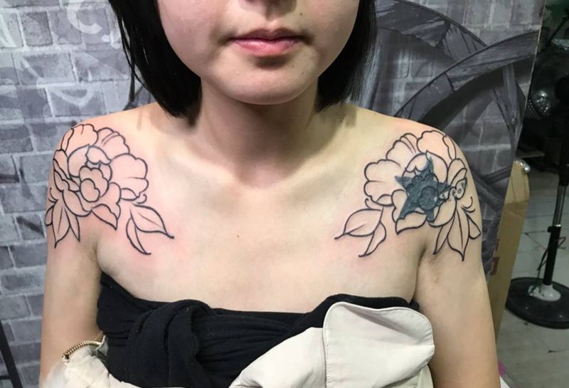 • 女性大花胸纹身_43张霸气漂亮的女性大花胸纹身图案作品