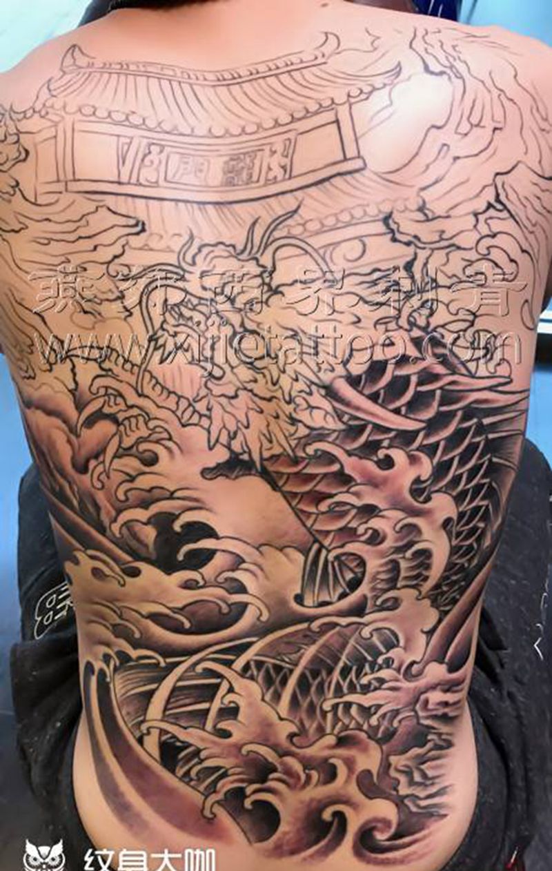 黑灰满背纹身图案