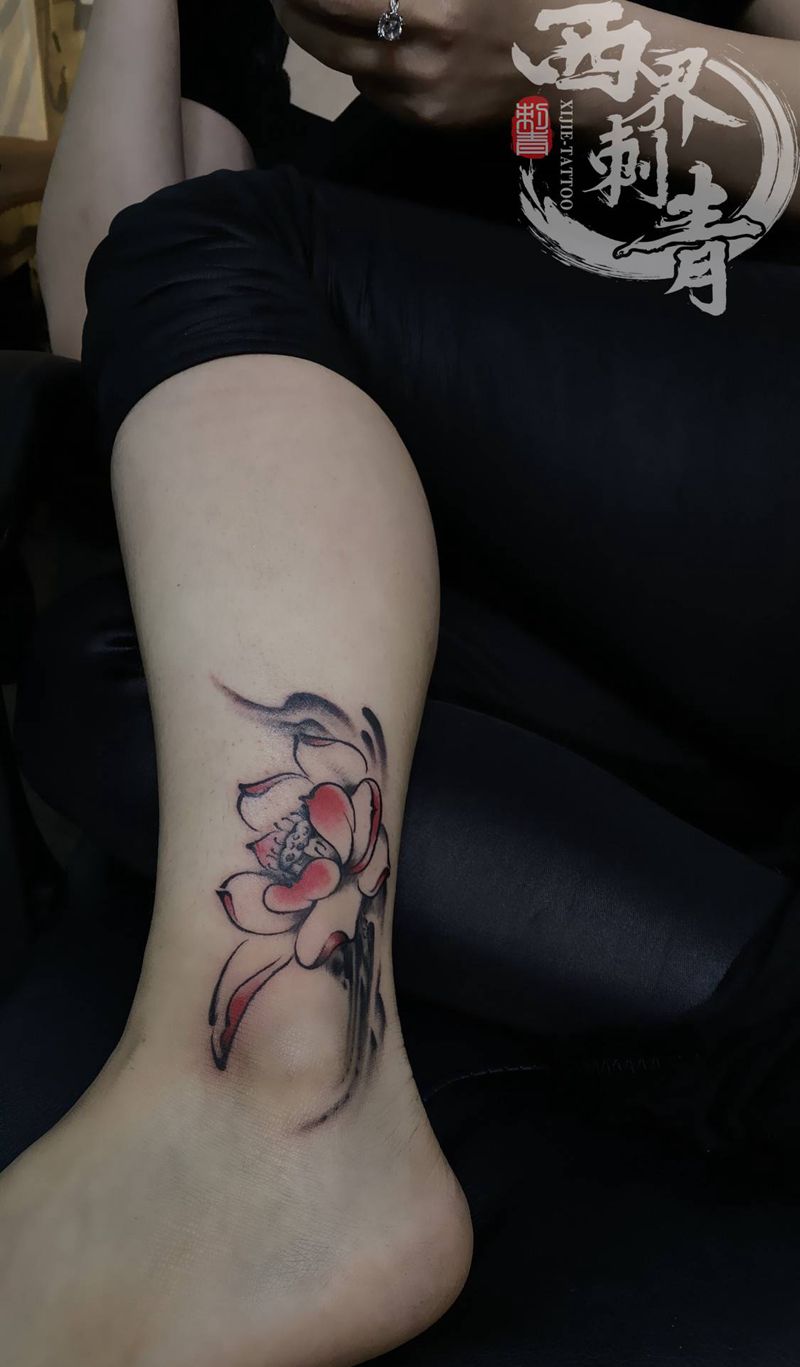 当前位置: 首页 >河北省廊坊市纹身店-西界刺青纹身图案>小腿荷花莲花纹身图片_腿部脚部新传统水墨纹身图案
