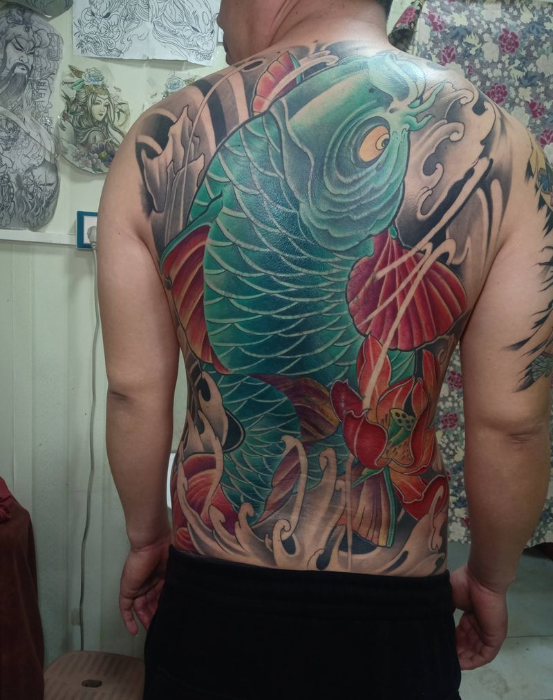 当前位置: 首页 >河北省沧州市纹身店-福帅刺青纹身图案>遮盖大鲤鱼纹身图片_背部新传统纹身图案