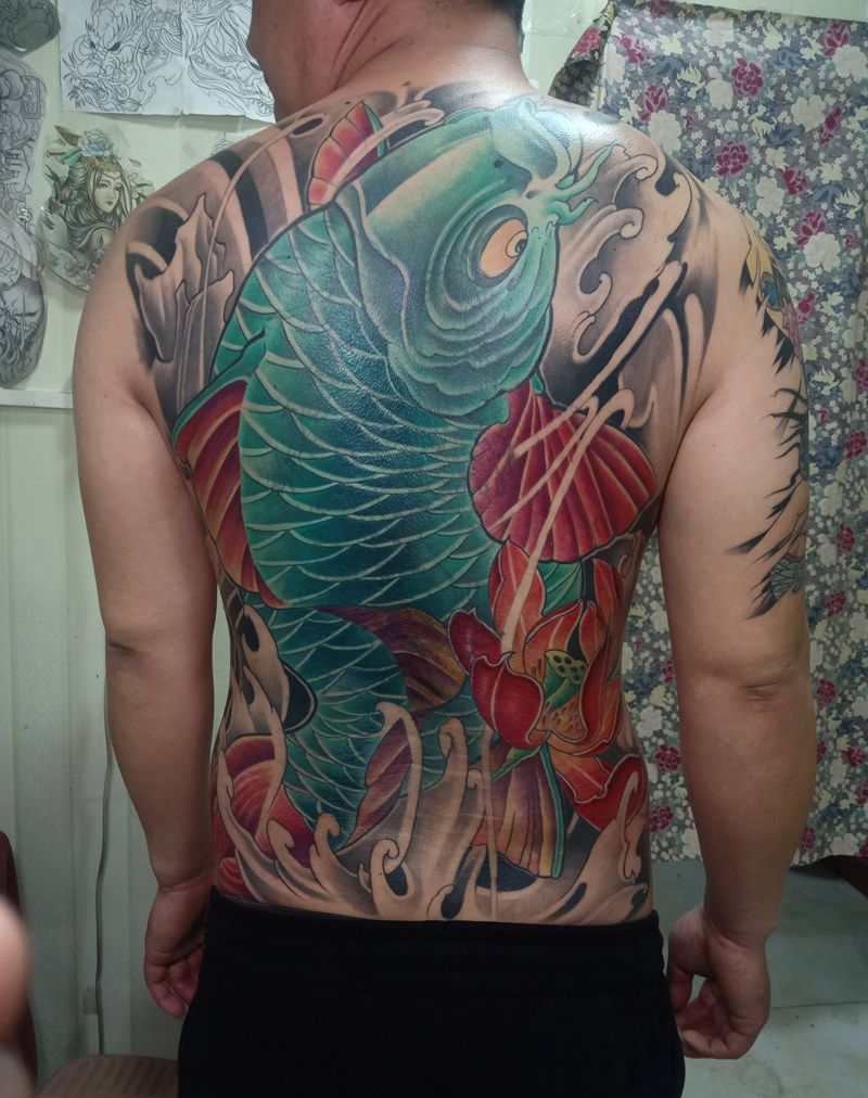 当前位置: 首页 >河北省沧州市纹身店-福帅刺青纹身图案>遮盖大鲤鱼纹身图片_背部新传统纹身图案