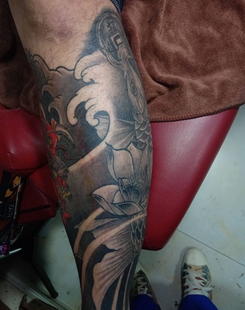 • T网红王老大花腿龙纹身图片_腿部新传统纹身图案