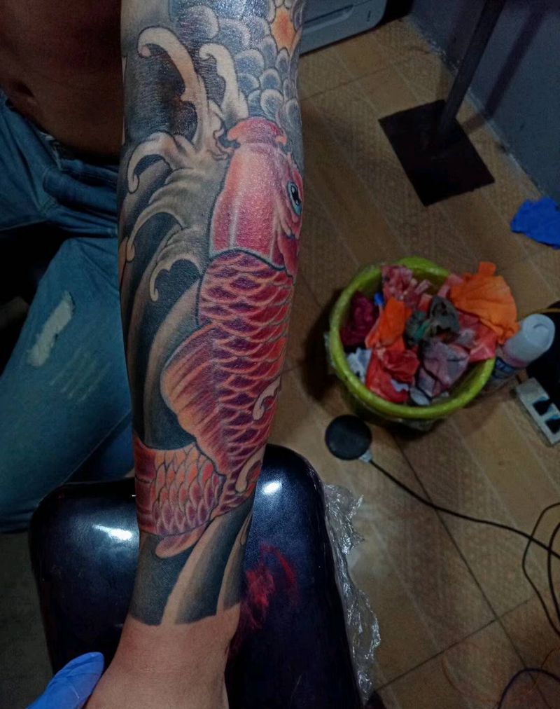当前位置: 首页 >河北省沧州市纹身店-福帅刺青纹身图案>鲤鱼纹身图片_手臂新传统纹身图案