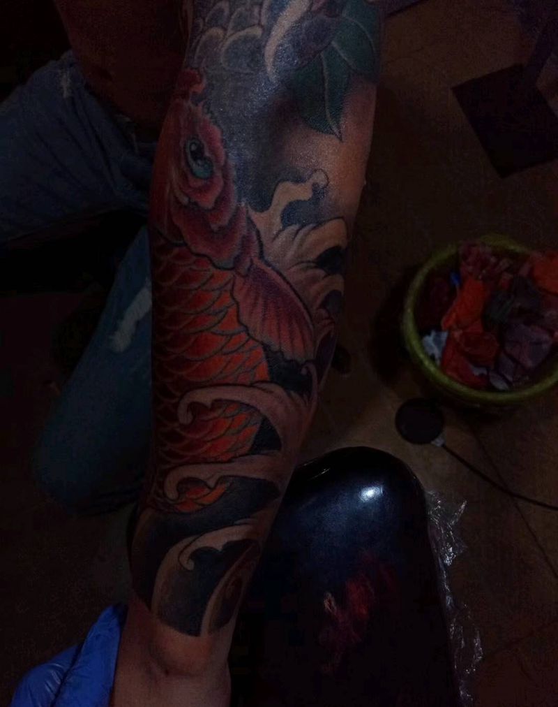当前位置: 首页 >河北省沧州市纹身店-福帅刺青纹身图案>鲤鱼纹身图片_手臂新传统纹身图案