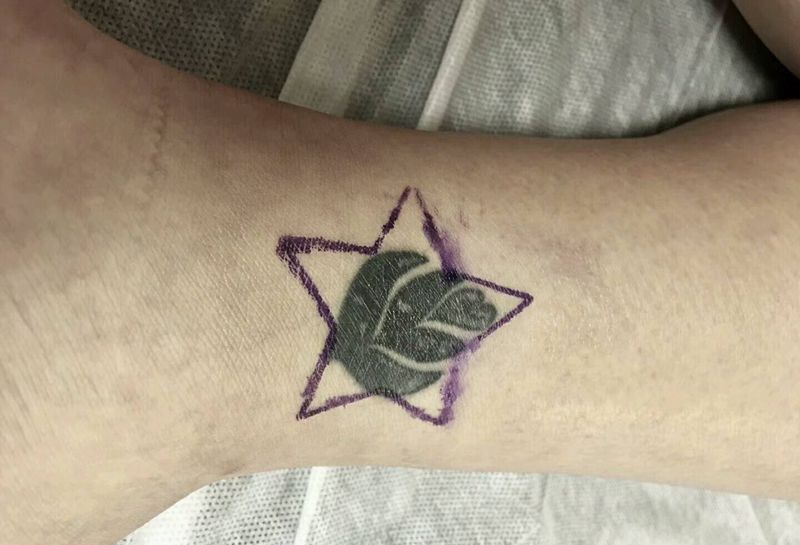 五角星 星空纹身图片_脚部腿部欧美写实水彩五角星星空遮盖纹身图案
